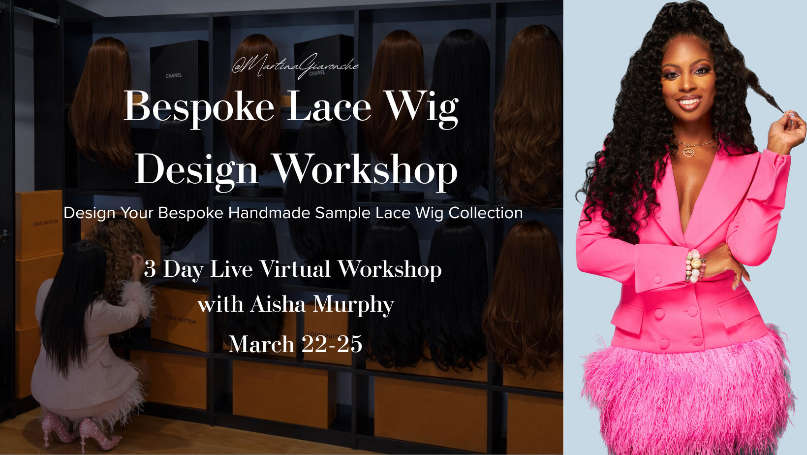 Private Training Experience by Bespoke Wig Artisan Aisha MurphyThis is a private 1:1, high-touch training experience designed for both new and experienced wigmakers ready to refine their craft and transition into bespoke lace wig artisans. You’ll work directly with Aisha Murphy, choosing your training focus between Bespoke Wig Mastery or Lace Wig Customization. You’ll gain hands-on experience in advanced wigmaking techniques, along with the structure and strategy needed to operate at a higher level. The final day is a dedicated VIP immersion experience where you’ll refine your business approach and develop a clear plan for pricing, positioning, and attracting premium clients. This will equip you to confidently offer $5,000 to $10,000+ bespoke wigs and build consistent five-figure booking cycles.Class Location: Atlanta, Georgia USA